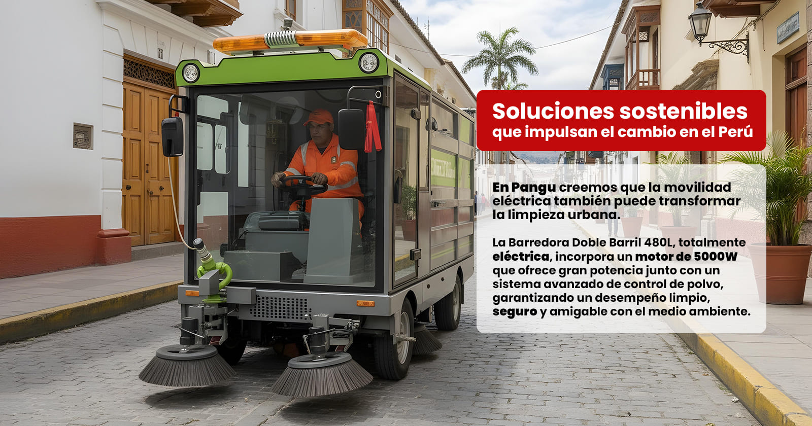 La Barredora Eléctrica 480 L de Pangu combina gran autonomía, sistema de succión pura y alta presión para una limpieza eficiente y sostenible.